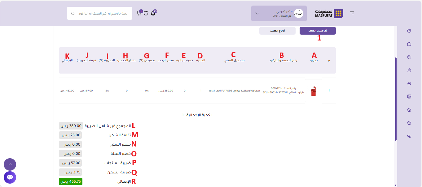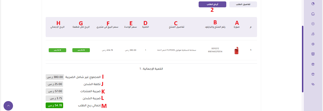 يُعد هذا القسم أداة تحليلية مهمة للتاجر، حيث يُظهر بوضوح ربحية كل طلب وكل منتج على حدة: