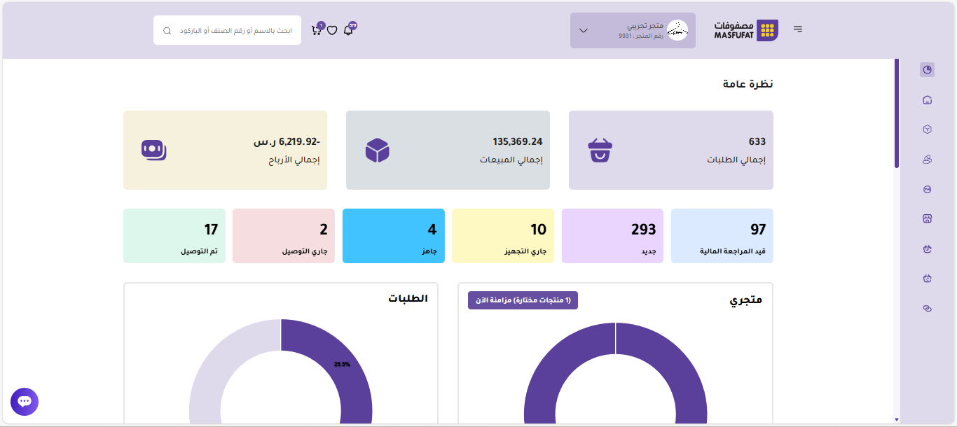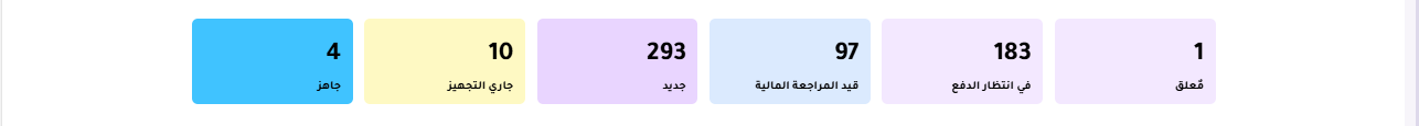 • جاهز: عدد الطلبات الجاهزة للشحن.