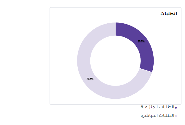 يوفر قسم "الطلبات" تحليلاً لأنواع الطلبات التي يستقبلها متجرك، بنسبة مئوية بين الطلبات المتزامنة إلى الطلبات المباشرة؛ فالطلبات المتزامنة: هي الطلبات التي تم مزامنتها مع متجرك على منصة سلة أو زد. أما الطلبات المباشرة: فهي الطلبات التي يتم شحنها مباشرة إلى عنوان العميل. فهذا التحليل يساعدك في إدارة تدفق العمليات اللوجستية وتحديد أولويات الشحن.