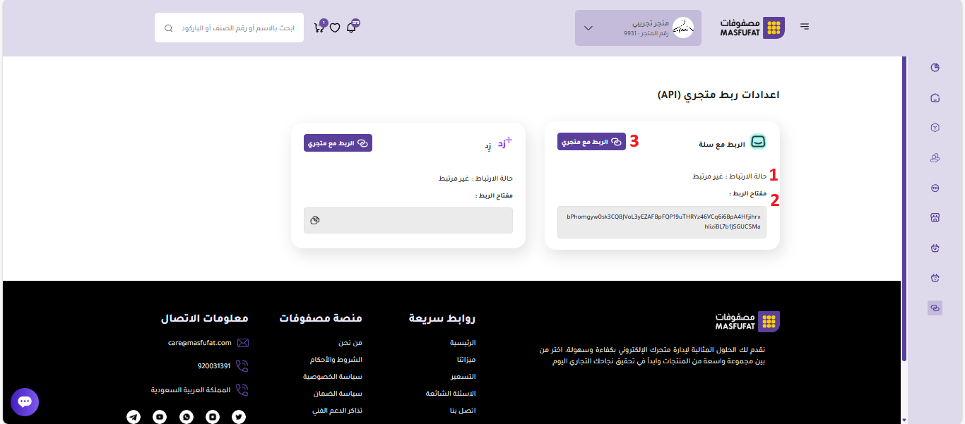 خطوات ربط المتجر بمنصة مصفوفات: