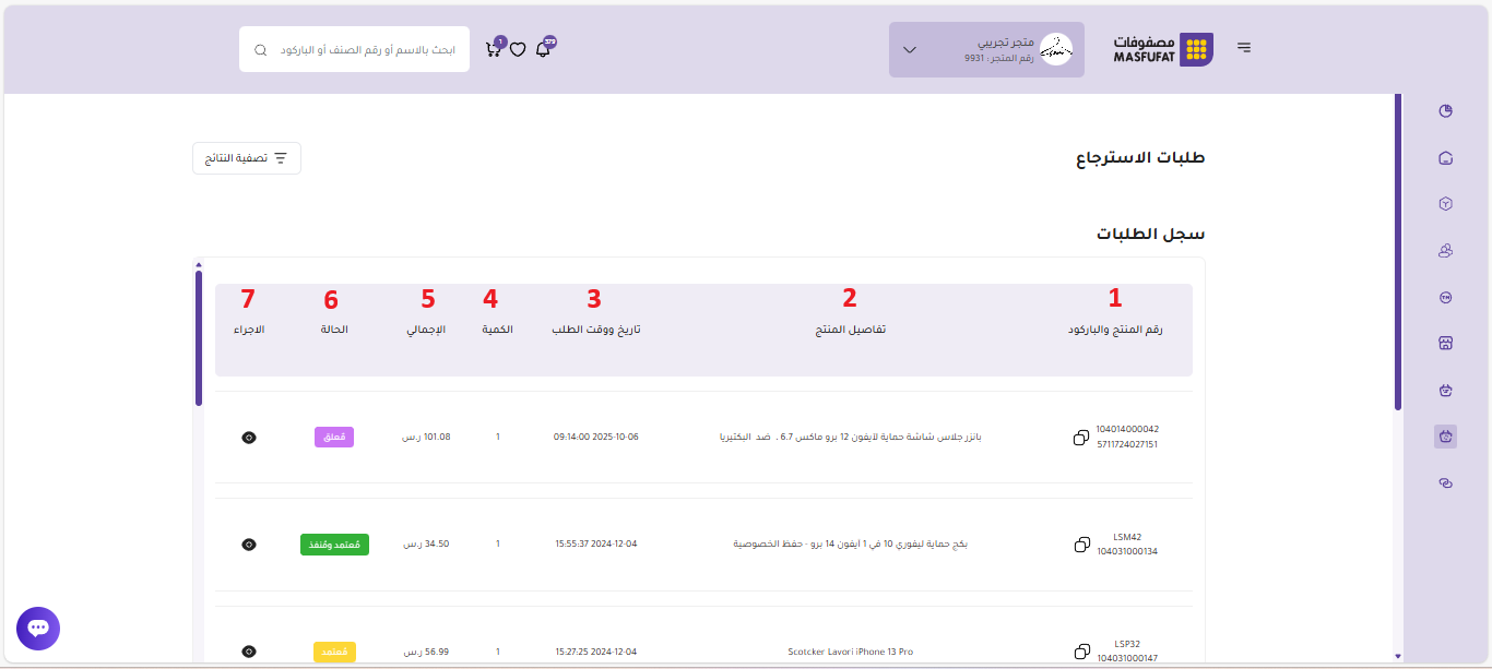 3. تاريخ ووقت الطلب: يقصد به تاريخ ووقت طلب الاسترجاع للمنتج.