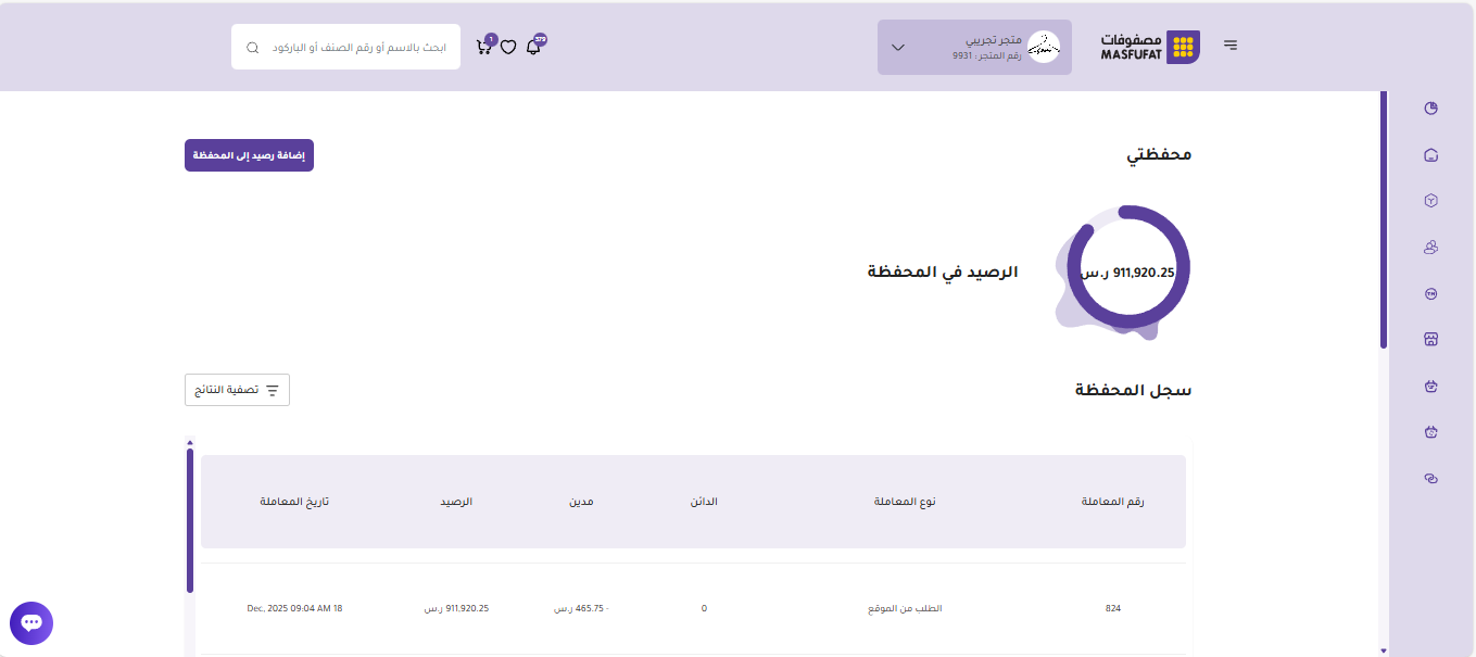 تُعد صفحة "محفظتي" في منصة مصفوفات الركيزة الأساسية التي تضمن للمستخدمين إدارة مالية مرنة وشفافة لكافة تعاملاتهم داخل المنصة. هذه الصفحة ليست مجرد عرض لرصيد محفظة التاجر، بل هي نظام متكامل يتيح لك شحن الرصيد، وتتبع العمليات المالية بدقة متناهية، وتصفية النتائج للوصول إلى المعلومة المطلوبة بأسرع وقت.