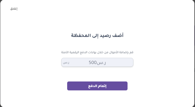 ولضمان استمرارية تعاملاتك وخدماتك على المنصة، توفر مصفوفات آلية بسيطة وفعالة لشحن رصيد المحفظة. من خلال زر "شحن رصيد إلى المحفظة"، يمكنك الانتقال إلى نافذة إضافة الرصيد، حيث تختار المبلغ المراد إضافته وتستخدم إحدى طرق الدفع المعتمدة في المنصة. بعد اختيار الطريقة المناسبة، يتم النقر على زر "إتمام الدفع" ليُضاف الرصيد فورًا إلى محفظتك، مما يضمن عدم انقطاع تجربتك.
