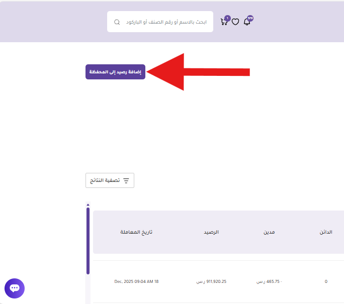 يتم استقبالك في صفحة المحفظة بعرض واضح ومباشر لأهم معلومة: الرصيد في المحفظة. تظهر هذه الأيقونة القيمة الحالية لرصيدك المتاح للاستخدام في أي وقت، مما يمنحك رؤية فورية لوضعك المالي.