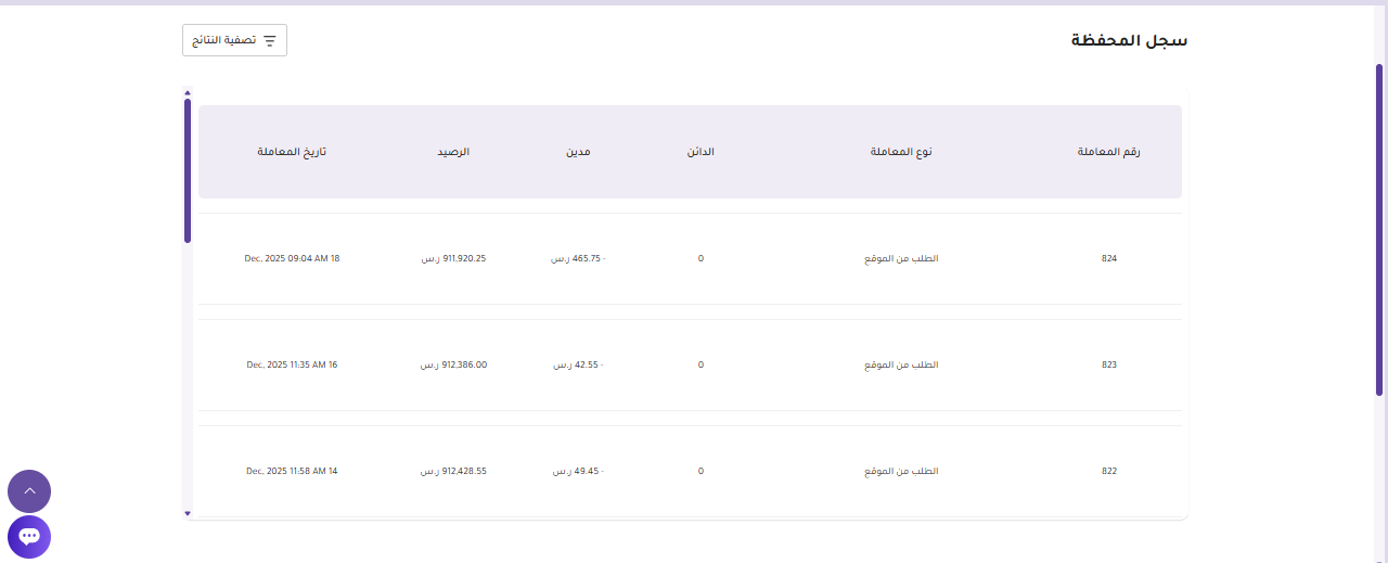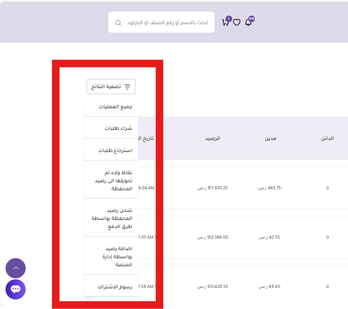 استعراض عمليات اشتراكك في المنصة التي تمت من خلال رصيد المحفظة. |