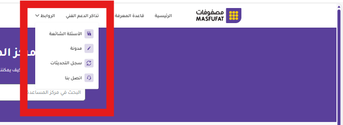 خامسًا: تقديم تذكرة دعم