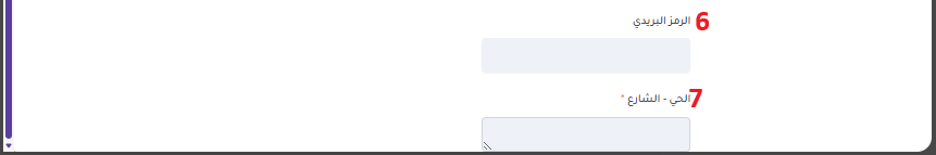 6. الرمز البريدي: الرمز البريدي الخاص بالعنوان المدخل.